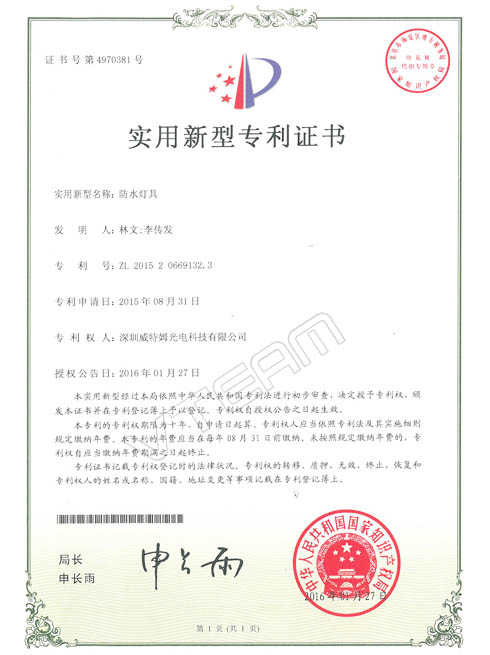 防水灯具 专利