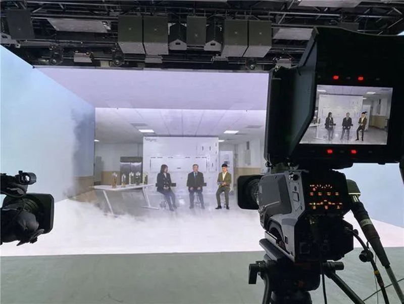 三、色温调节:演播室使用LED显示屏作为背景时,它的色温应与演播室内灯光色温一致,才能在拍摄中得到准确的色彩再现。演播室的灯光根据节目需求,有时使用3200K低色温灯具,有时使用5600K高色温灯具,根据现场情况调整为合适色温,从而获得满意的拍摄效果。