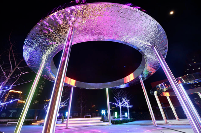 “双井之光”音乐喷泉,将元宇宙元素与“双井”两口井的历史名称完美融合,以虚拟投影成像技术,呈现出两口巨大的“井”的意象;圆形的“井”口内壁是由333体育打造的LED互动屏幕,画面颜色鲜艳,图像效果逼真,灯光与音乐同时互动,LED屏幕画面不断流转,让人沉浸式“感受”到四季更替中的双井美好时光。双井之光东侧的“双井之窗”,是展示窗口,为市民提供丰富的休闲、娱乐、健身等互动设施。28米长的跑道旁设有可感应的数字LED互动显示屏,融合互动、放映、展示等功能。该显示屏是333体育具有超高刷新,高亮度以及高清显示效果的创意产品,同时屏幕具备军工级全防护、防水、防潮、防泼溅,适应室外复杂的运行环境。