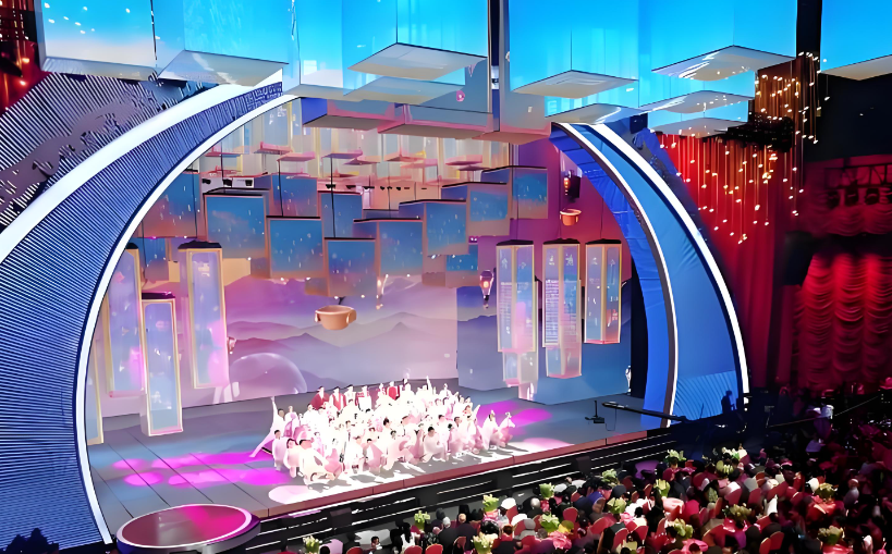 LED显示屏凭借高亮度、高分辨率、广视角和灵活拼接等特点,成为舞台舞美设计的核心元素。在端午节晚会中,LED屏常被用于展示节日主题背景,如动态龙舟竞渡、粽叶飘香、屈原诗词等场景,通过细腻的画面与光影变化,营造身临其境的氛围。例如,央视“端午情·中国梦”晚会采用全3D技术舞台,LED大屏结合虚实结合的视觉效果,重现楚地风光与龙舟竞渡的壮阔场景。此外,LED屏还可实时转播龙舟赛现场,通过多角度镜头切换与动态特效叠加,增强观众的临场感。